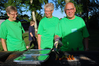 Båtrace med 60 båtar var onsdagkvällens stora begivenhet. Iallafall för många föräldrar, jag menar barn, som tävlade i bäcken. Korvgrillningen stod de äldre för i gårdsgänget, tryggt, varmt och riktigt gott!