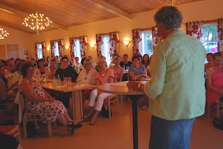 Sommarnatt för kvinnor var fullbokat, 124 kvinnor var bänkade i Parksalen och lyssnade till Britta Hermansson och åt en god räksallad. Vid 23-tiden var det fortfarande gäster kvar som hade trevligt kring borden, då gick undertecknad hem för att blogga och välja ut kort till bloggen .