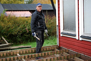Nils och Mikael bygger nya altaner på västkuststuga 5-8.