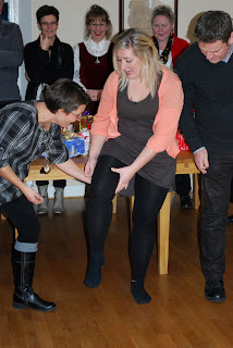 Jubel! Lisbeth vann deltävlingen i ”att riva längst remsa på kortast tid” när personalen hade julfest. Njut av några glada bilder på personal och respektive när det är full fart med julklappsleken, tipstävling och mycket god mat. Nu är det snö på gården! Ca 2 cm..(blöt) snö och +1 grad är väderläget idag. Vi har dock haft kalla, kalla nätter. Upp till – 14 grader har det varit veckan som har gått. Julveckan är det lugnt på gården, några campinggäster och någon stuga är uppbokad, öket har dock tagit semester några dagar och väntar på 250 glada tonåringar och ledare på söndag-måndag.